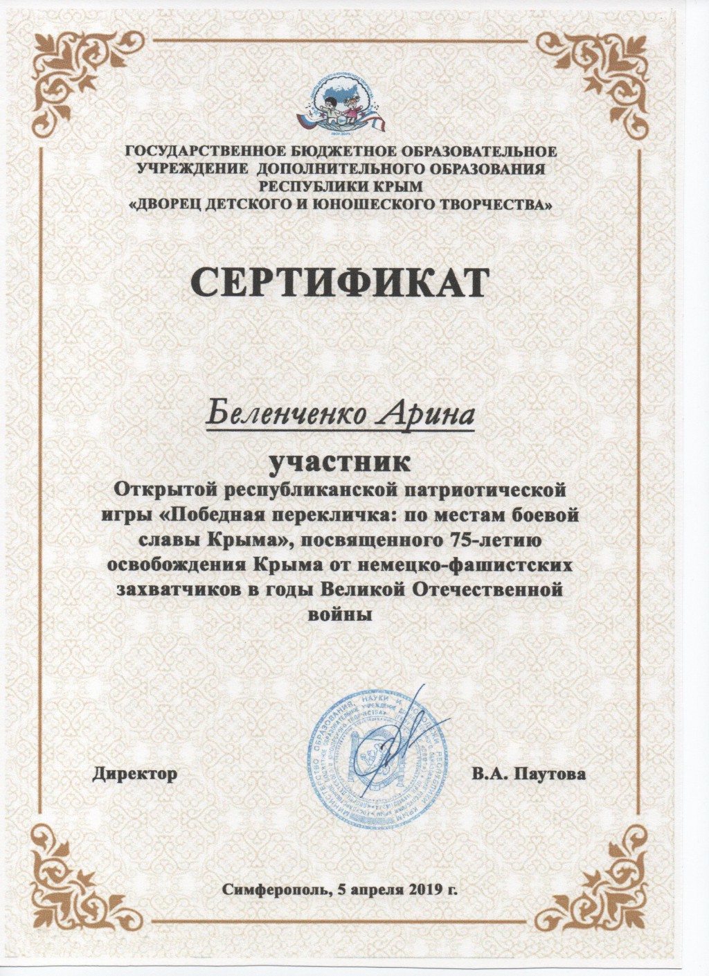 Муниципальное бюджетное образовательное учреждение дополнительного образования « Центр детского и юношеского творчества» Нижнегорского района Республики Крым